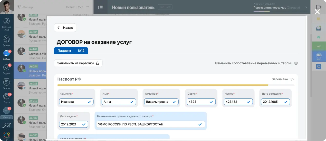 Раньше заполняли через ворд по 12-15 минут, сейчас делаем договоры через этот виджет, стало быстрее раз в 5 по ощущениям ))