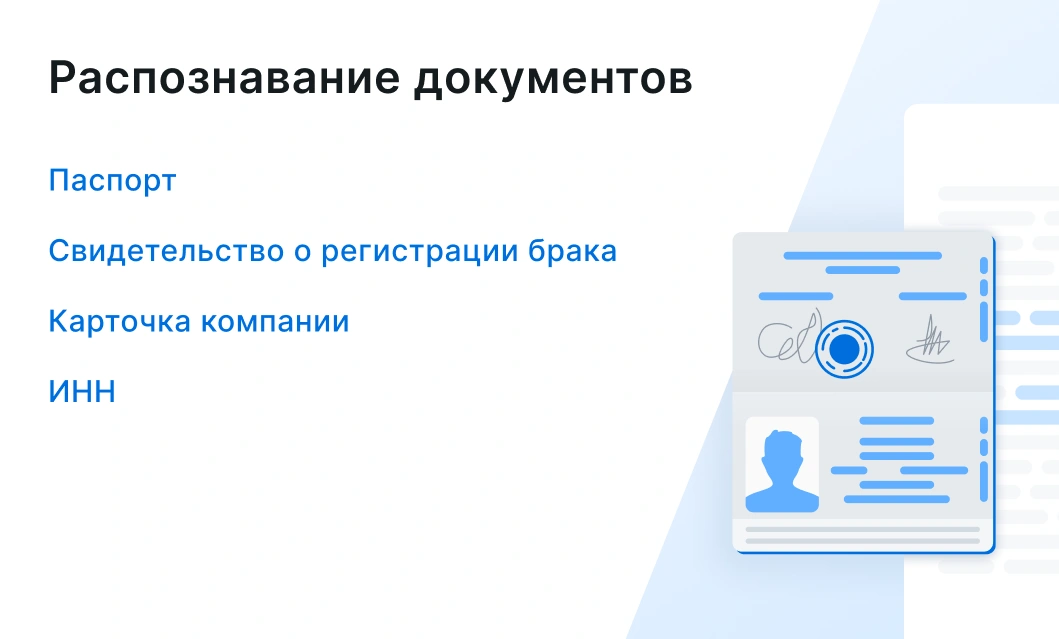 Автоматически распознавайте паспорта, свидетельства о регистрации брака, ИНН, СНИЛС и иные документы и мгновенно заполняйте документы на их основе